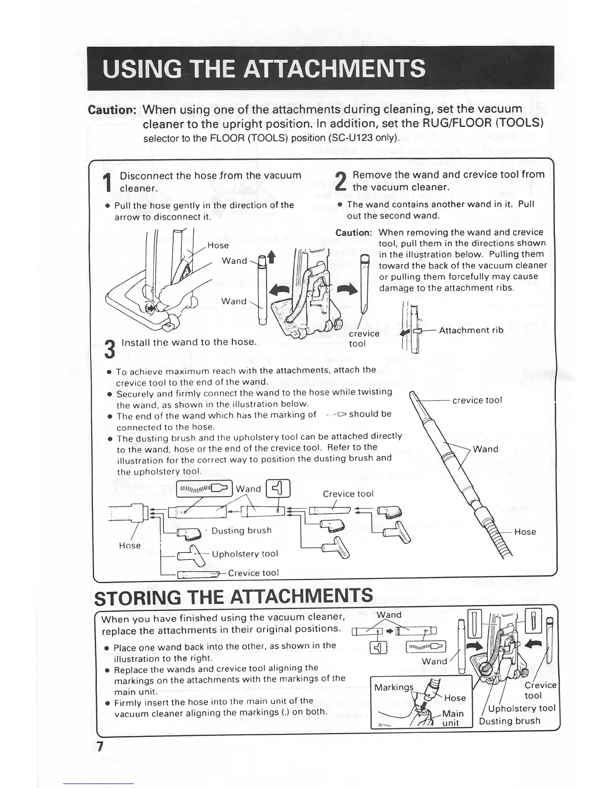 Sanyo SC-U123 - Using the Attachments; Storing the Attachments