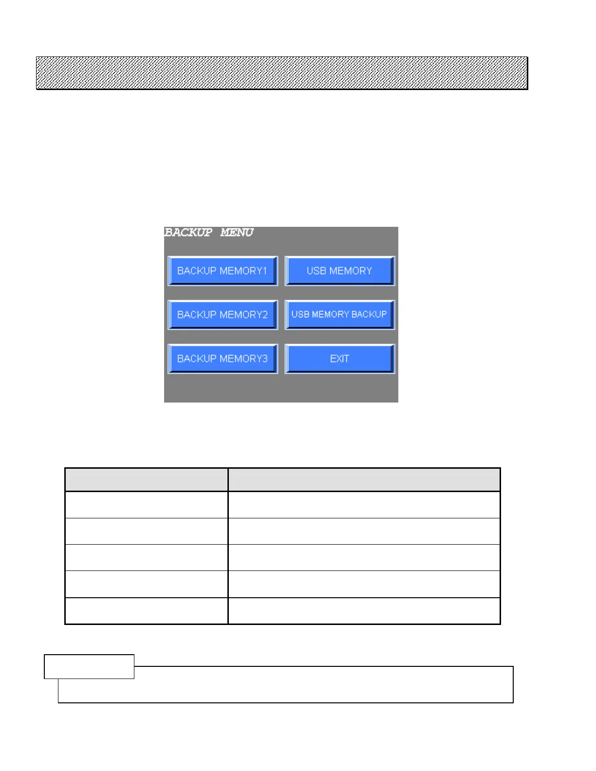 Table 5.6-1 BACKUP menu and its contents