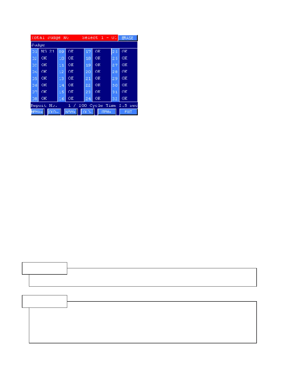 Press NEW++ or OLD- - keys to change report data for every 100 cycle.