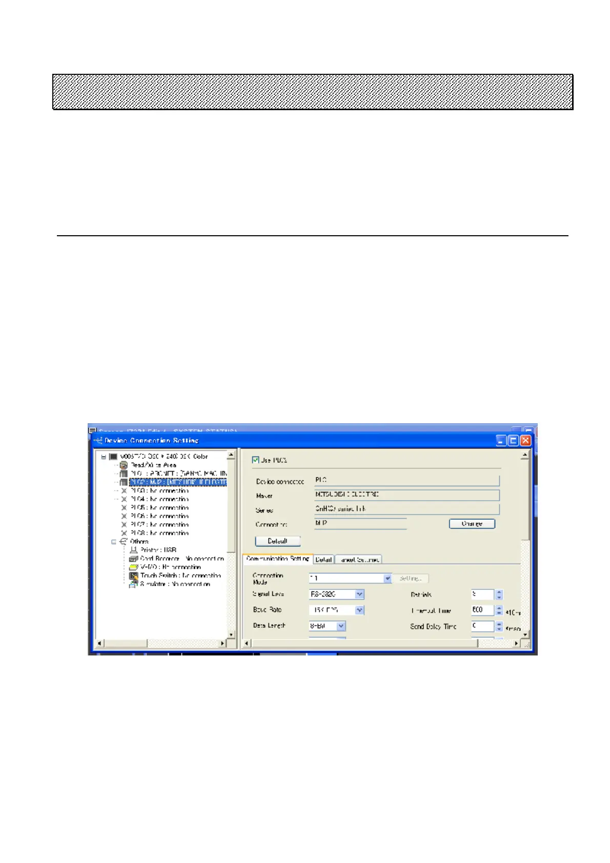Device Connection Setting shall be set by the editor (V-SFT) to connect with PLC or other device except