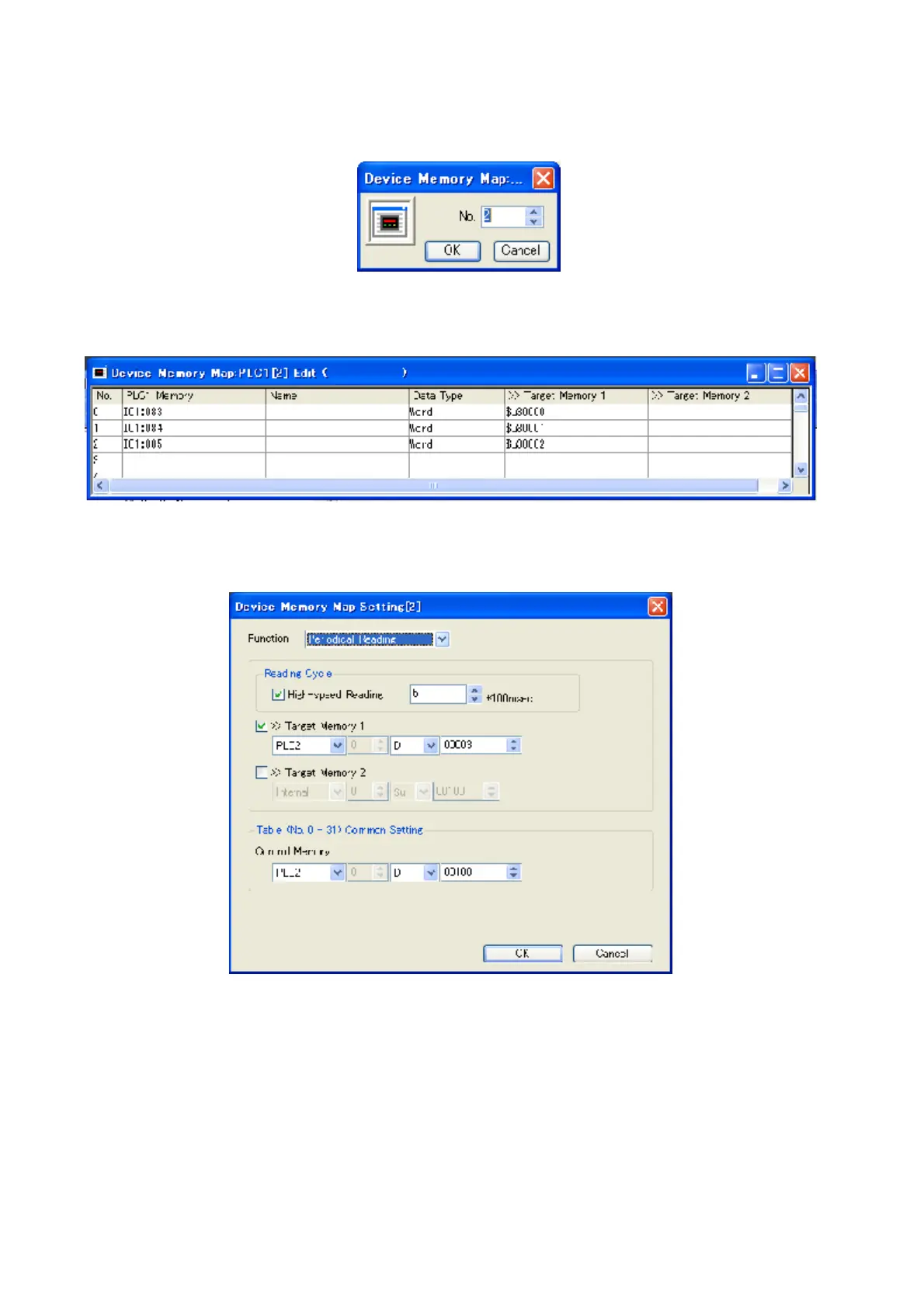 5) Input table No. and click [OK] to indicate setting window of Device Memory Map.