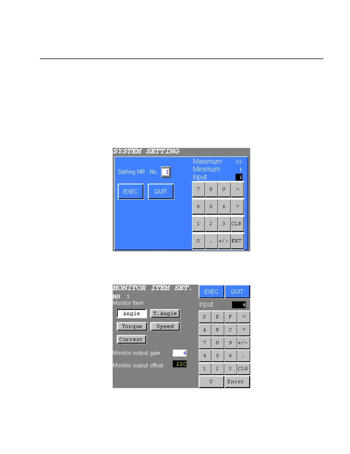 displayed. Input the No. of the NUTRUNNER and press EXEC. Press QUIT key to cancel and return to