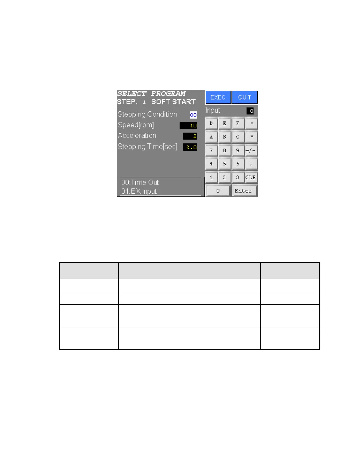 Input the value using numeric input keys and press EXEC. Press QUIT to cancel all new settings.