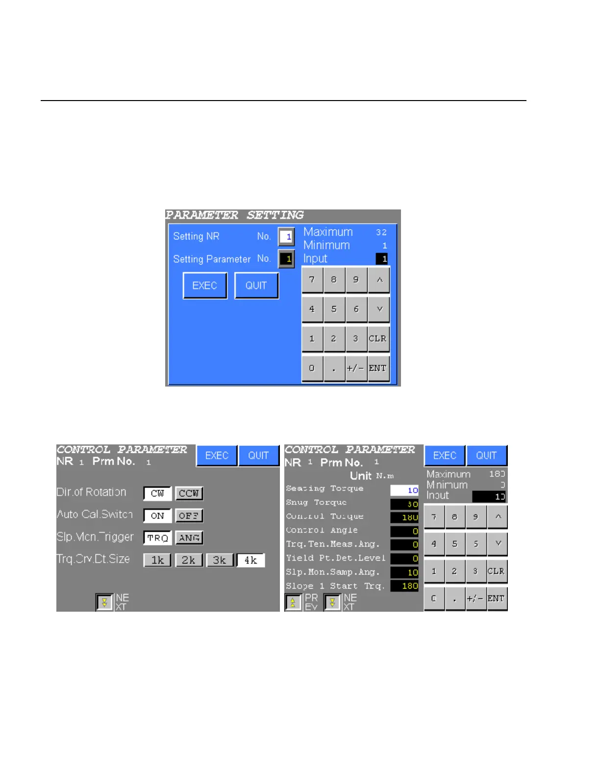 be displayed. Input the No. of the NUTRUNNER and the parameter to be set up. The CONTROL