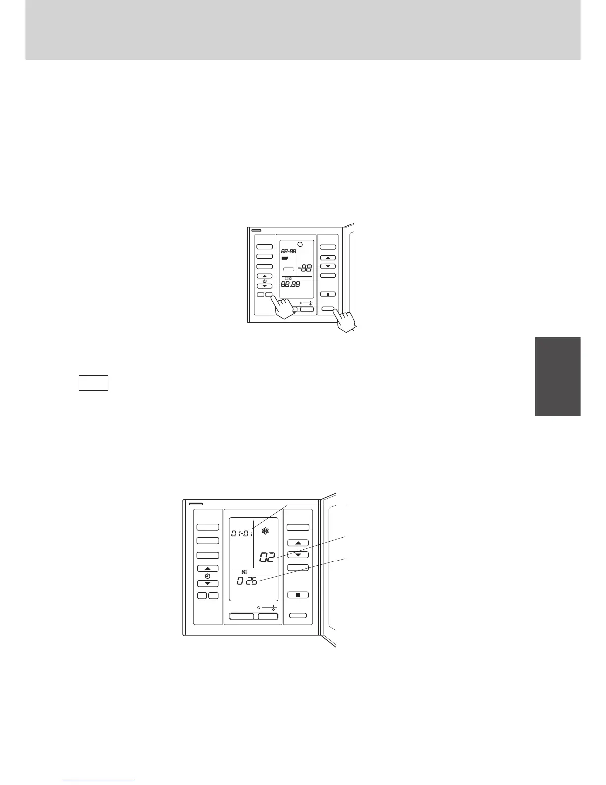 ❏ For this example the UNIT No. (Indoor unit address) is fixed at 01– 01.