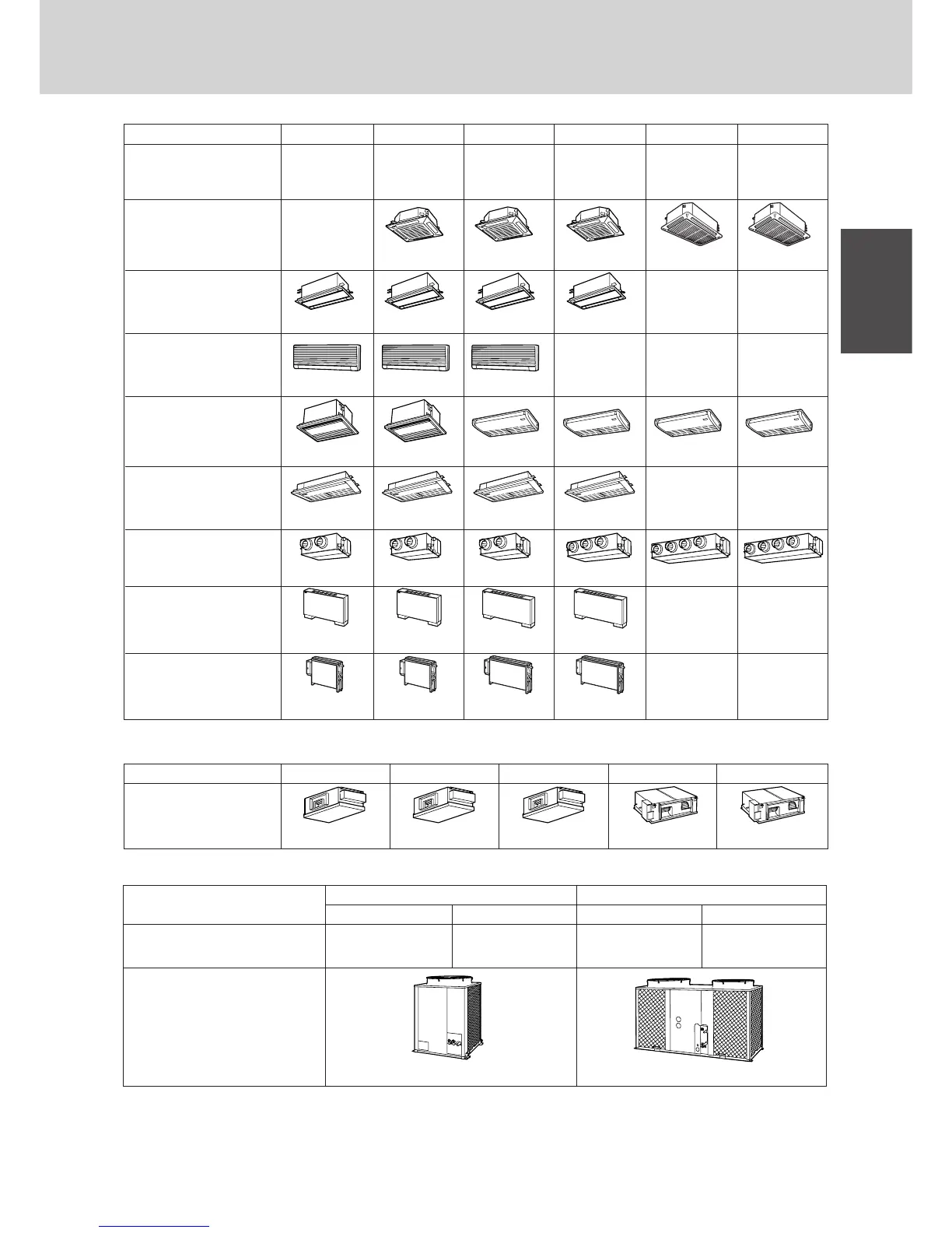 Cooling / Heating / 25.0 (85,300) / 31.5 (107,500) / 56.0 (171,000) / 63.0 (215,000)