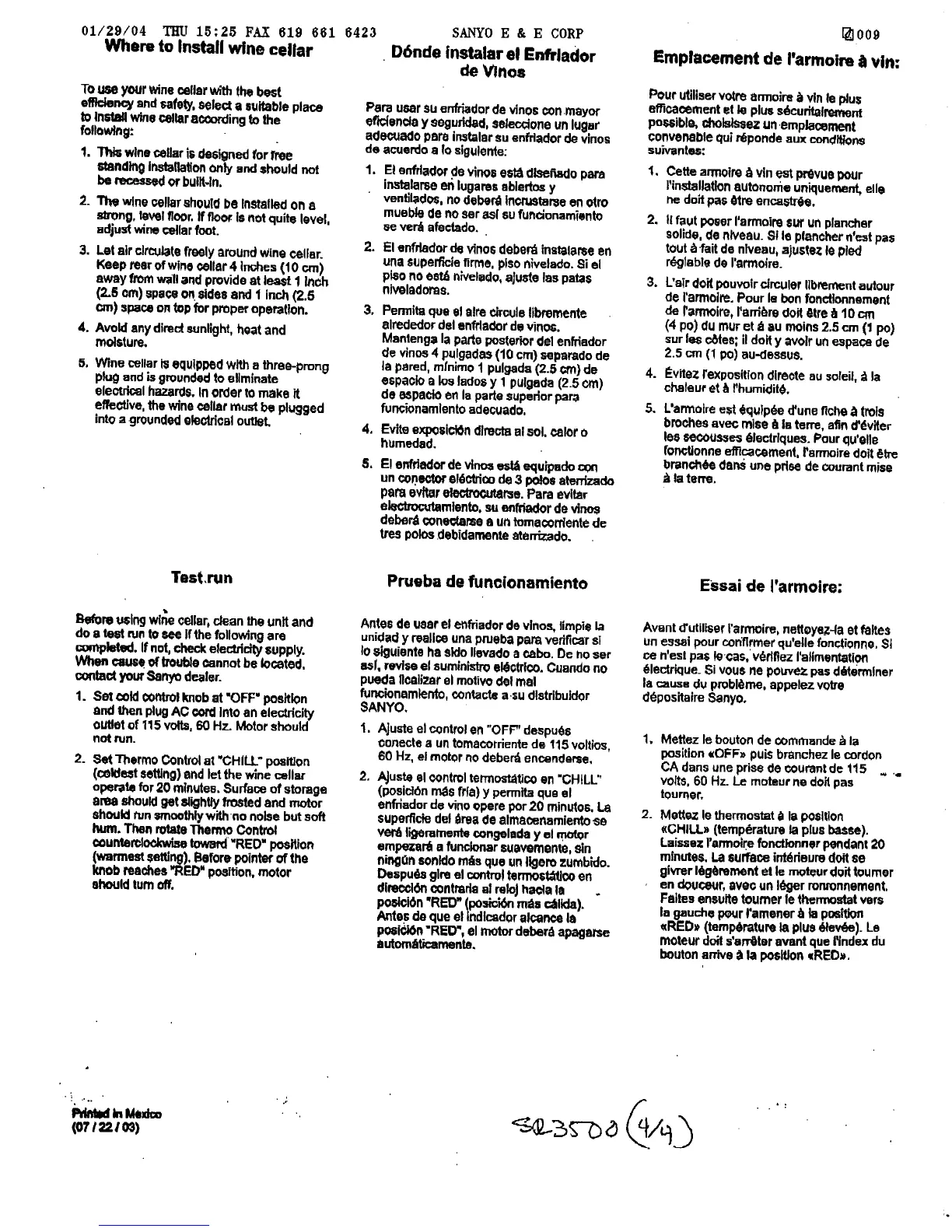 Sanyo SR-3500 - Installation Location; Operational Test Run
