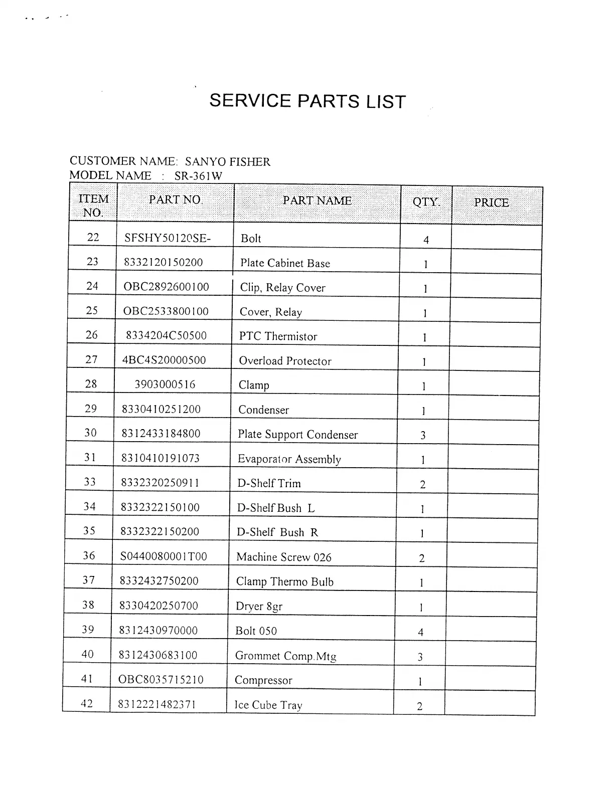 Sanyo SR-361W - Electrical and Thermostat Components; Shelving and Interior Components; Refrigeration Cycle Components