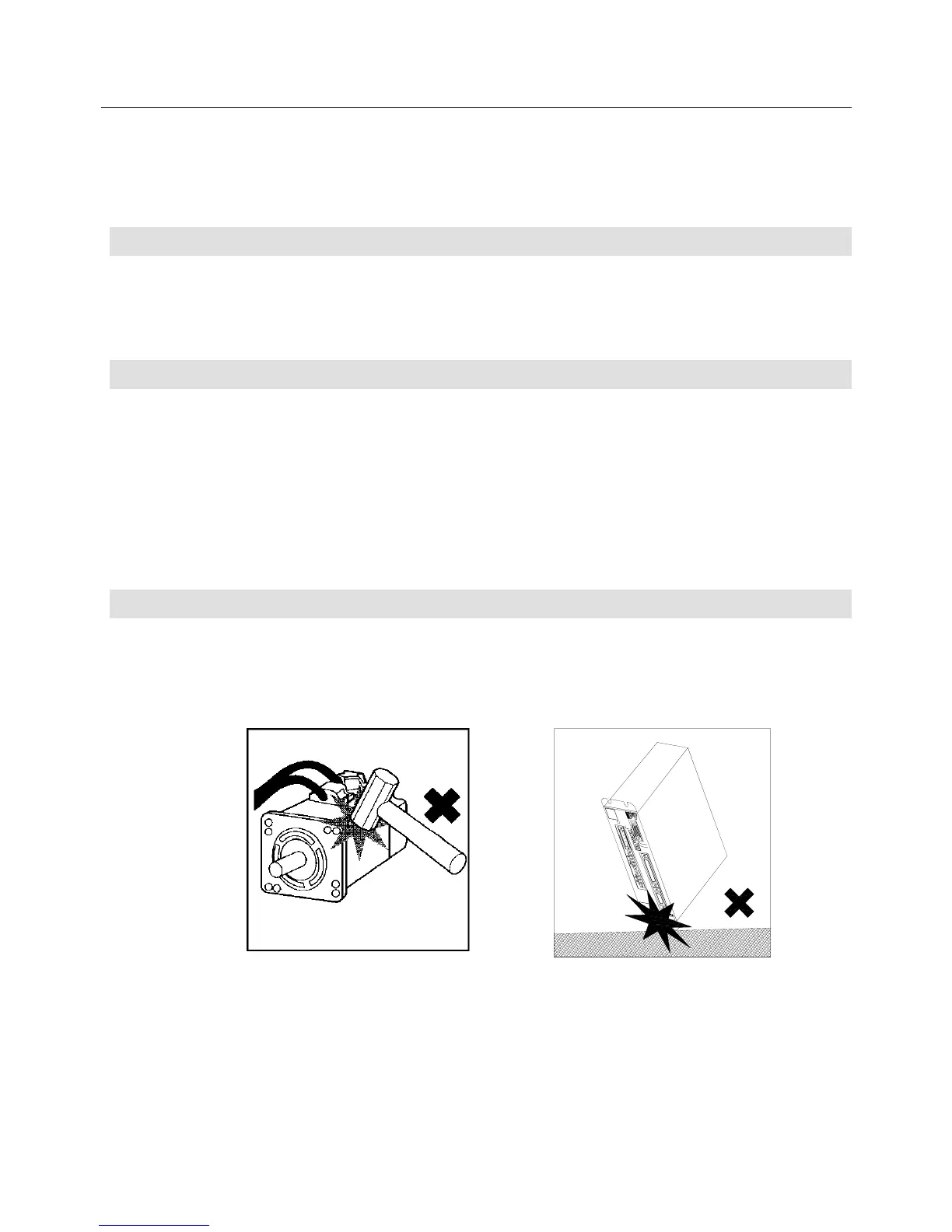 • At installation, don't give shocks to the Servomotor and the Servo Amplifier, or they may break.