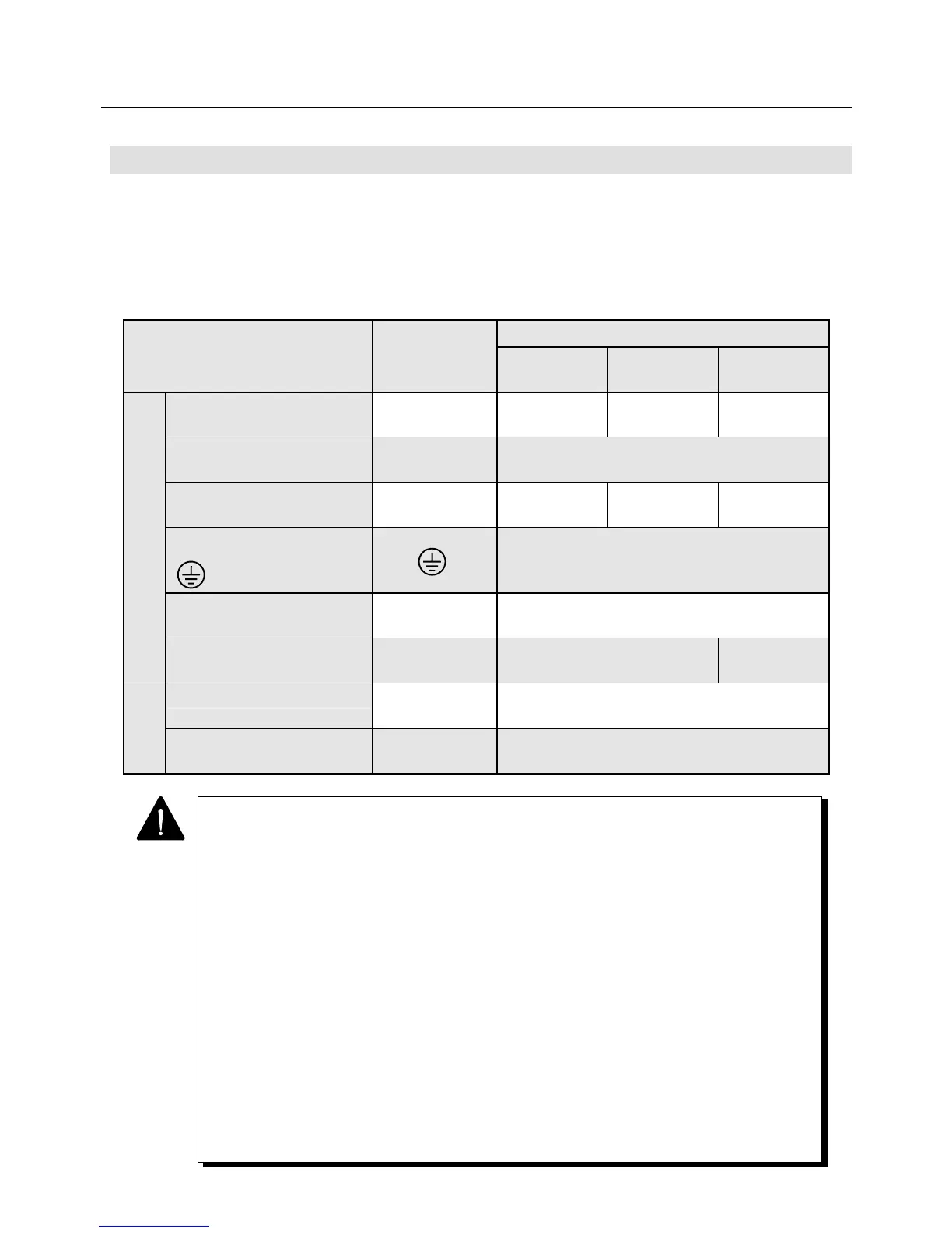• The table below shows typical sizes of external terminals and wires used for the Servo Amplifier.