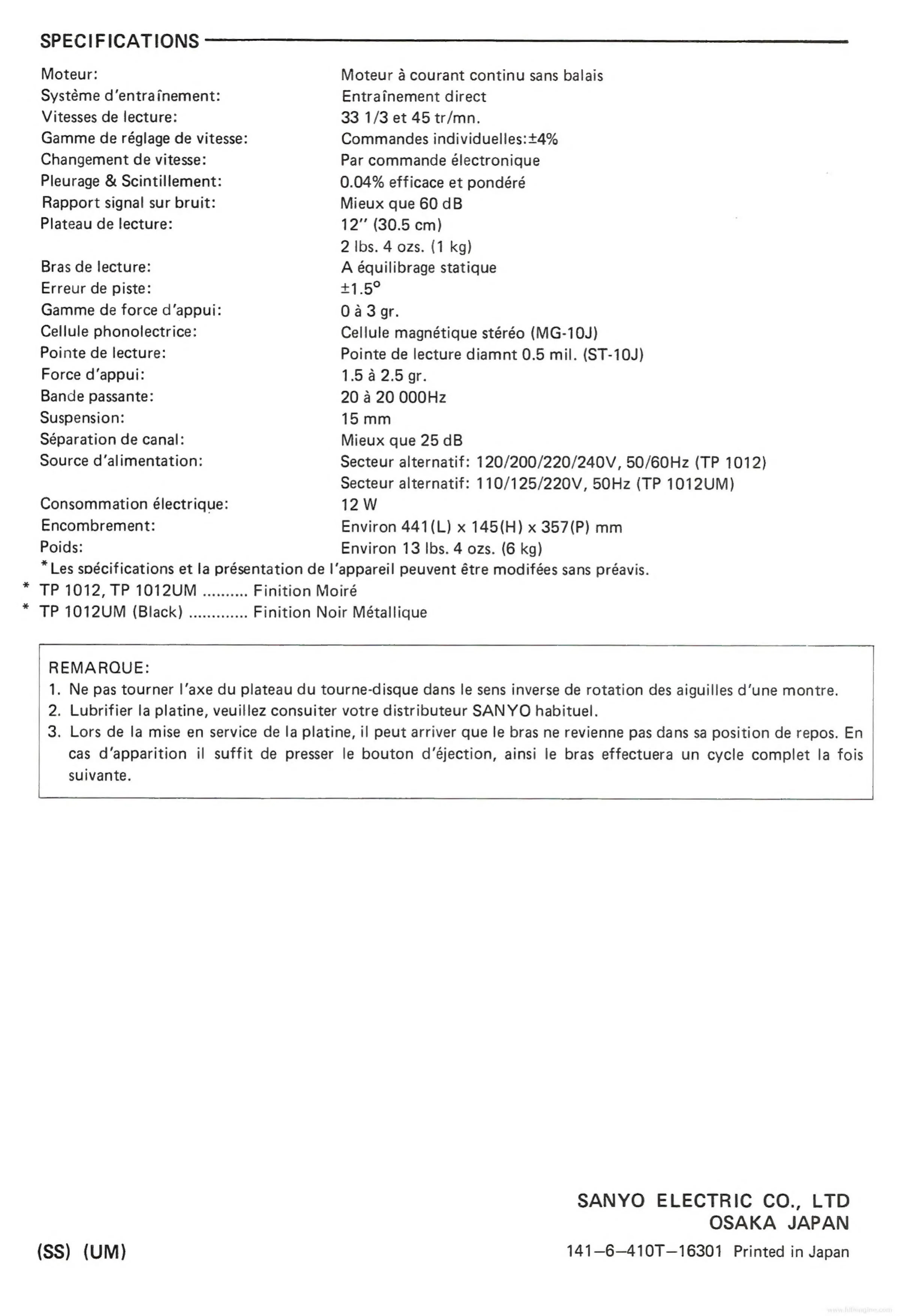 Sanyo TP 1012 - Page 12