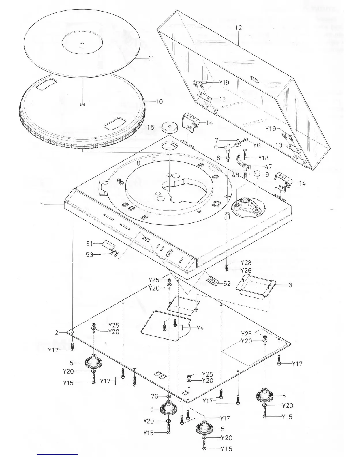 Sanyo TP 1024 - Component Identification; Turntable Assembly Exploded View
