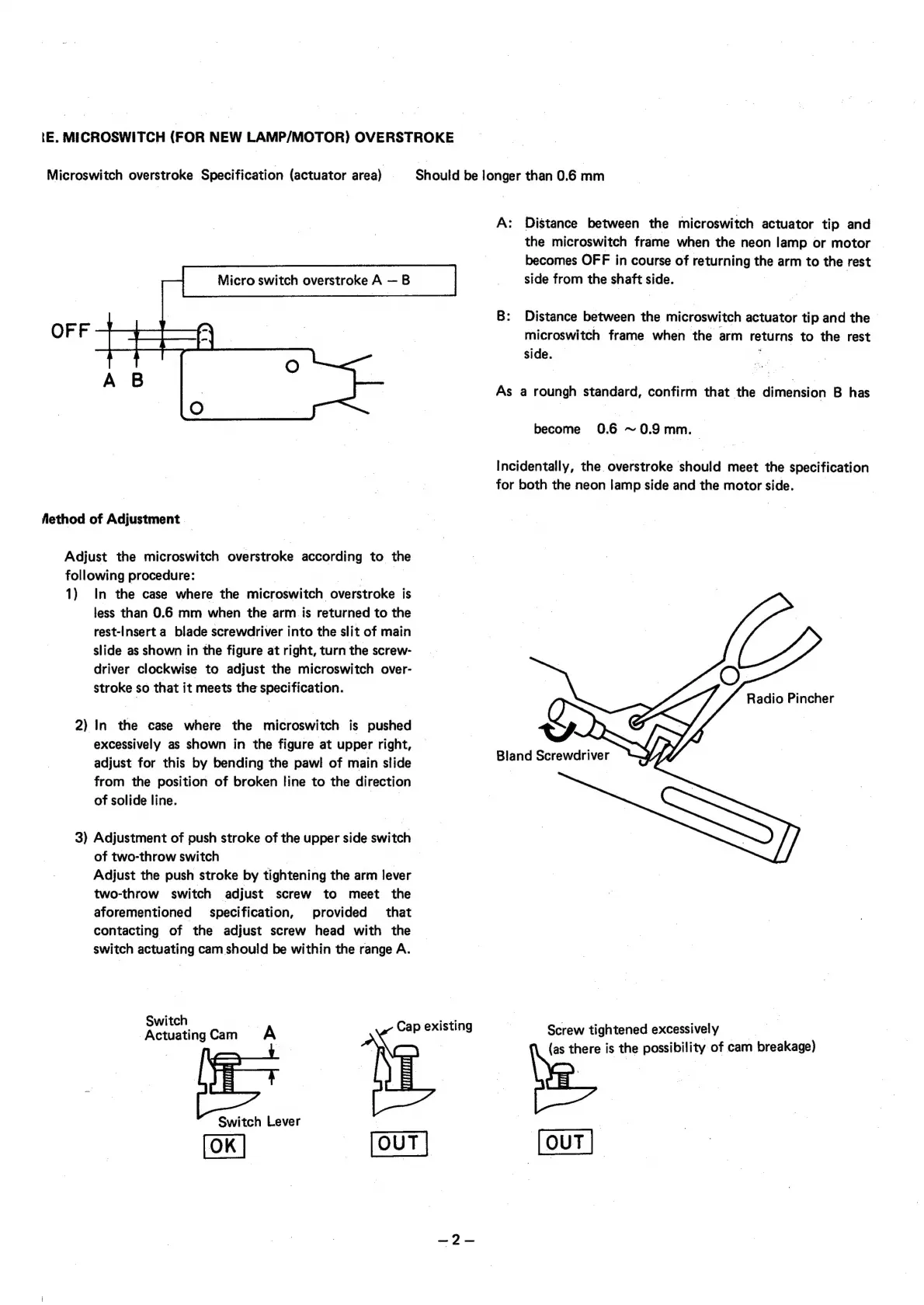 Sanyo TP 477 - Microswitch Overstroke Adjustment; Microswitch Overstroke Specification; Method of Microswitch Overstroke Adjustment