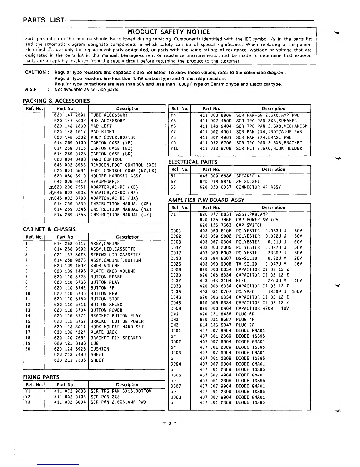 Regular type resistors and capacitors are not listed. To know those values, refer to the schematic diagram.