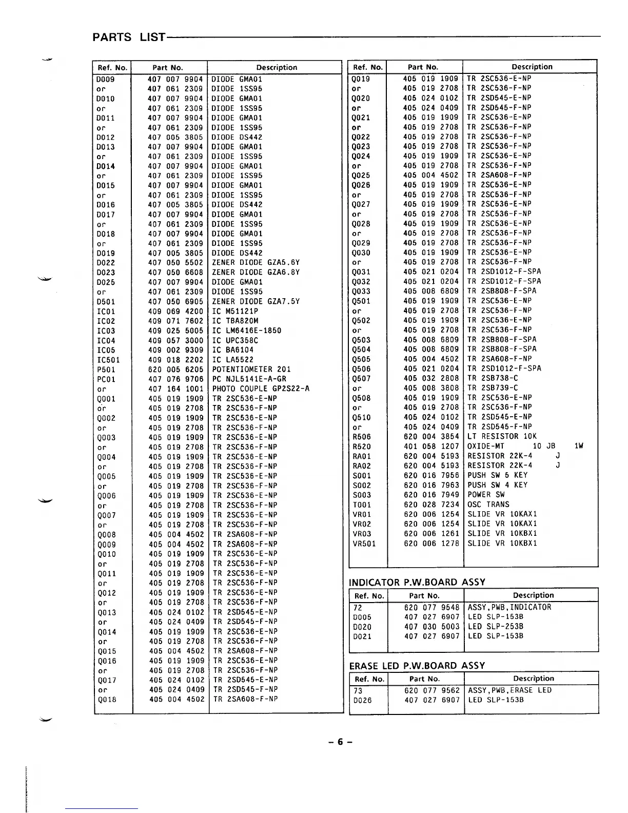 PARTS LIST