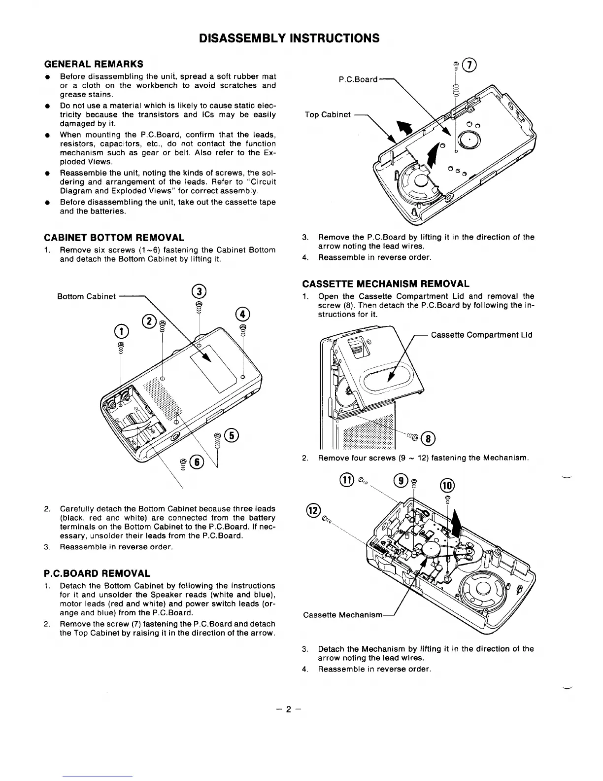 Before disassembling the unit, take out the cassette tape