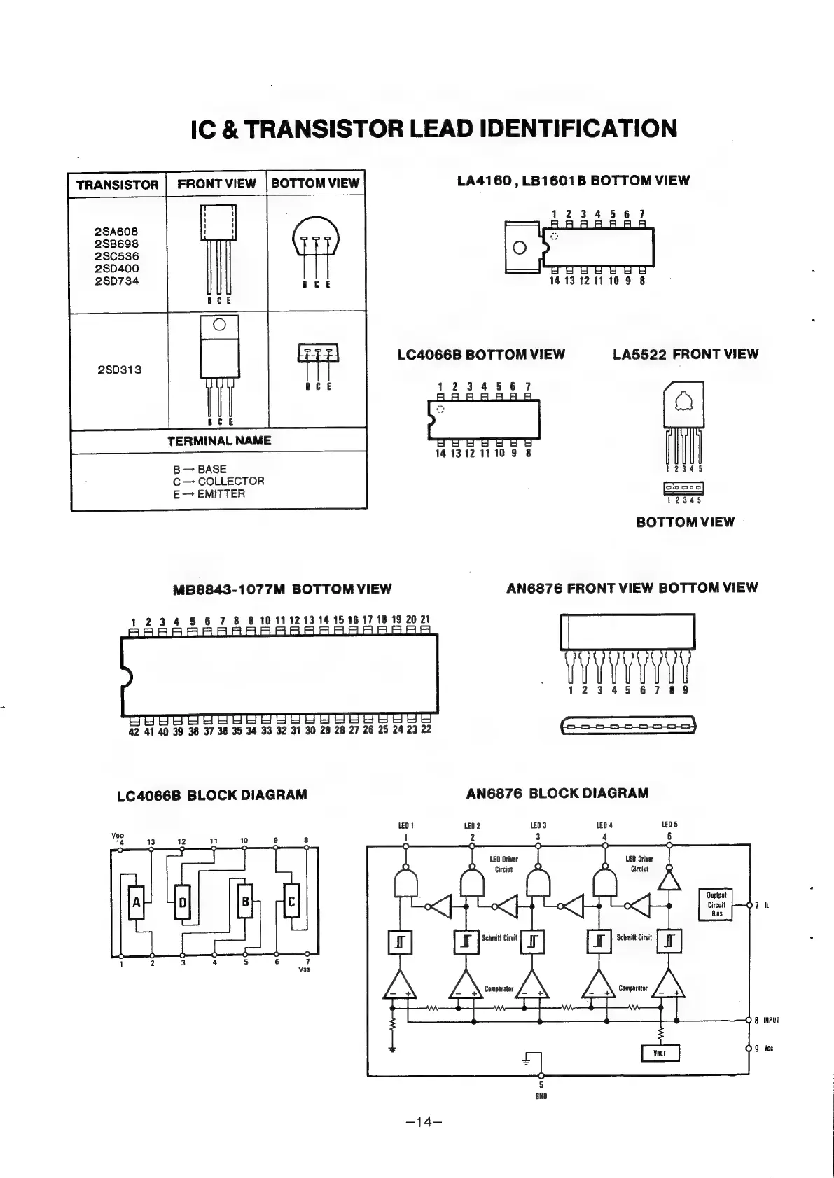 Sanyo TRC9010 - IC & Transistor Lead Identification; Bottom View