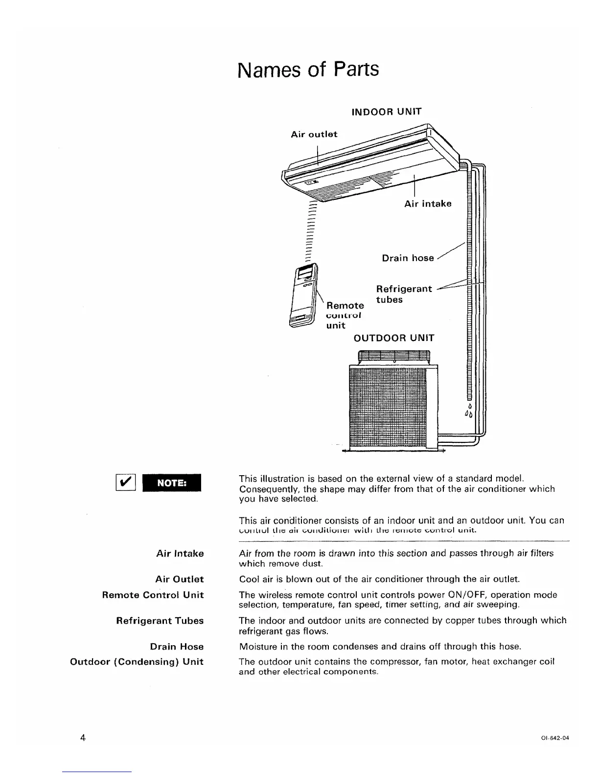 Sanyo TS2422 - Names of Parts; Air Intake; Air Outlet; Remote Control Unit