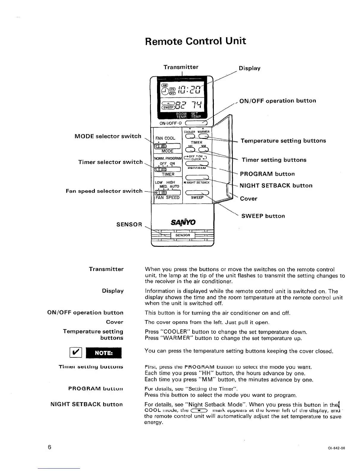Sanyo TS2422 - Remote Control Unit; Transmitter; Display; ON;OFF operation button
