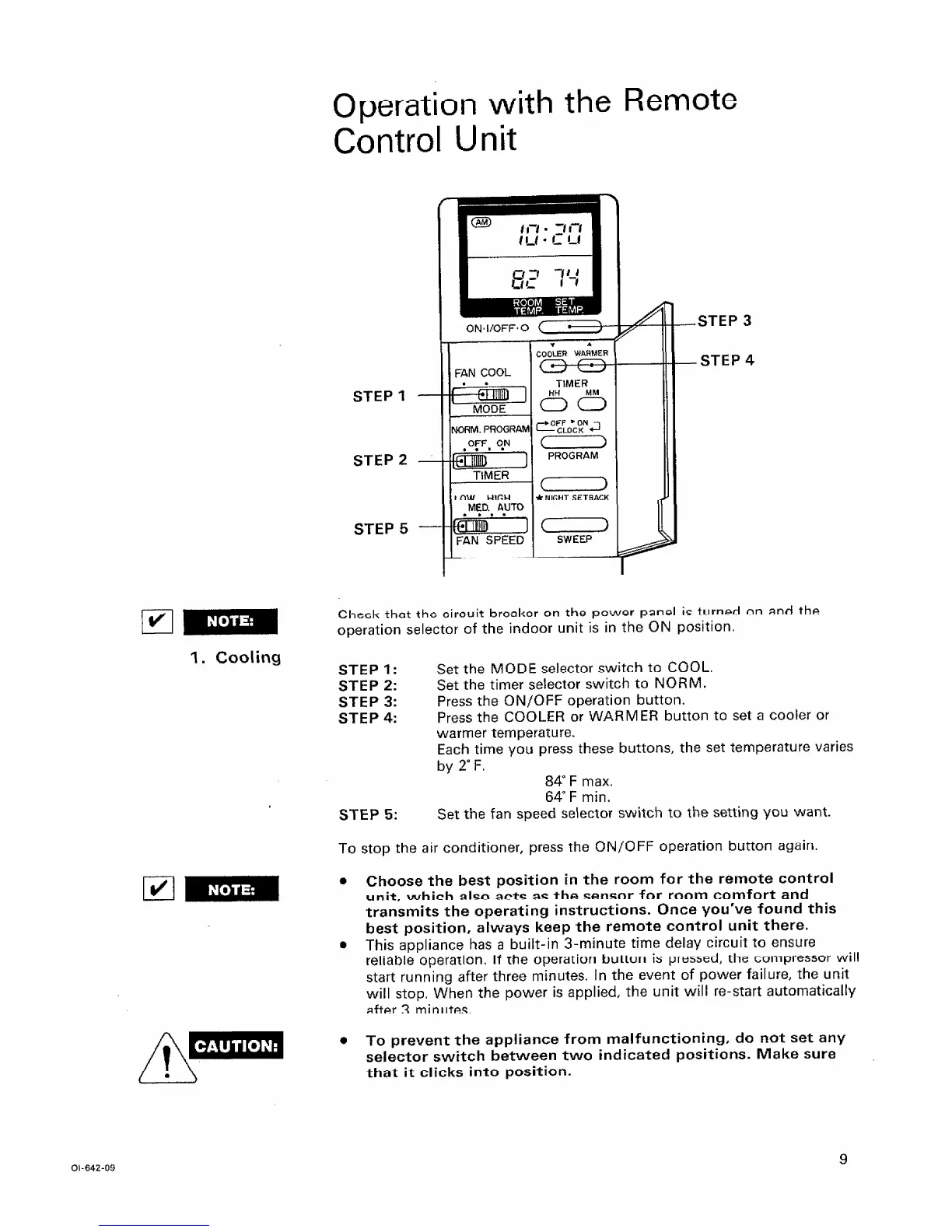 Sanyo TS2422 - Operation with the Remote Control Unit; 1. Cooling