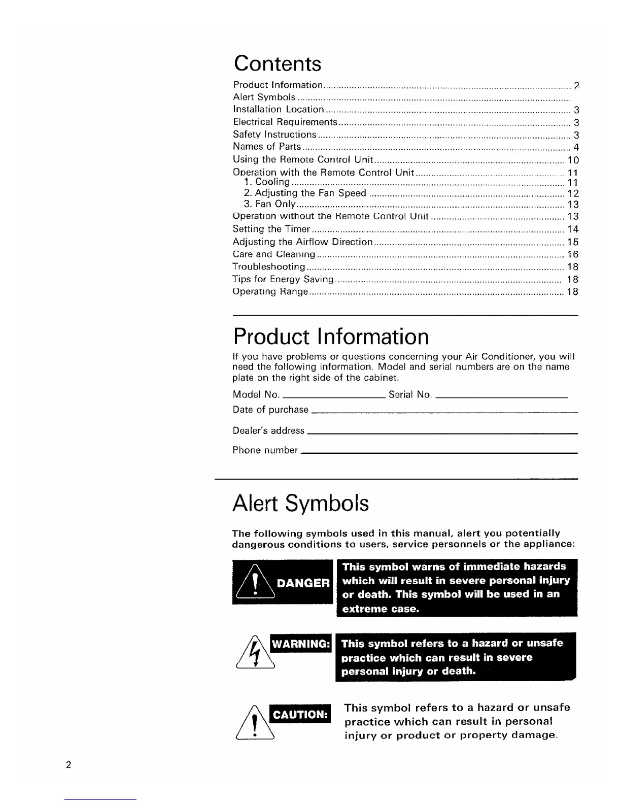 Sanyo TS2422B - Contents; Product Information; Alert Symbols