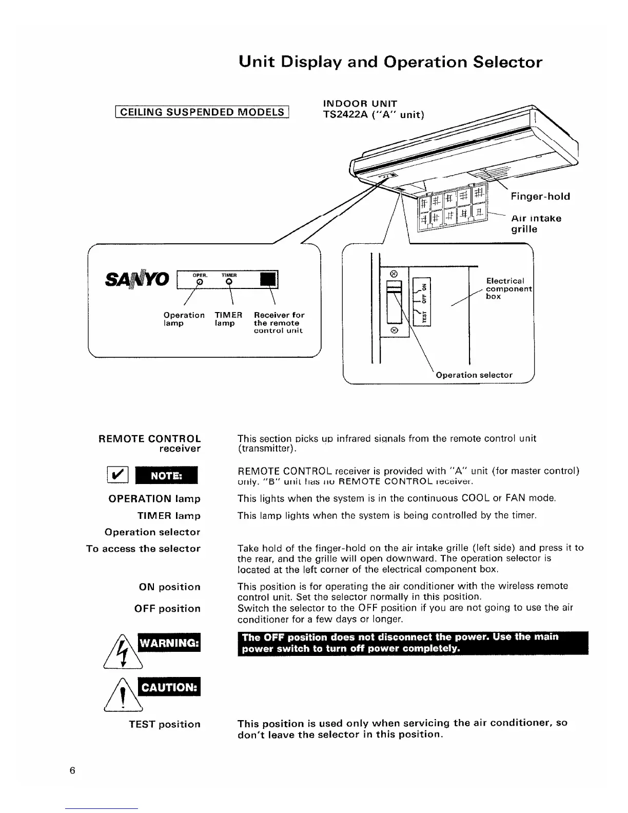 Sanyo TS2422B - Unit Display and Operation Selector; Remote Control Receiver; Operation Lamp; To Access the Selector