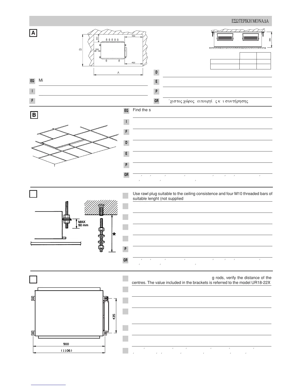 Mark on the ceiling the holes for the hanging rods, verify the distance of the