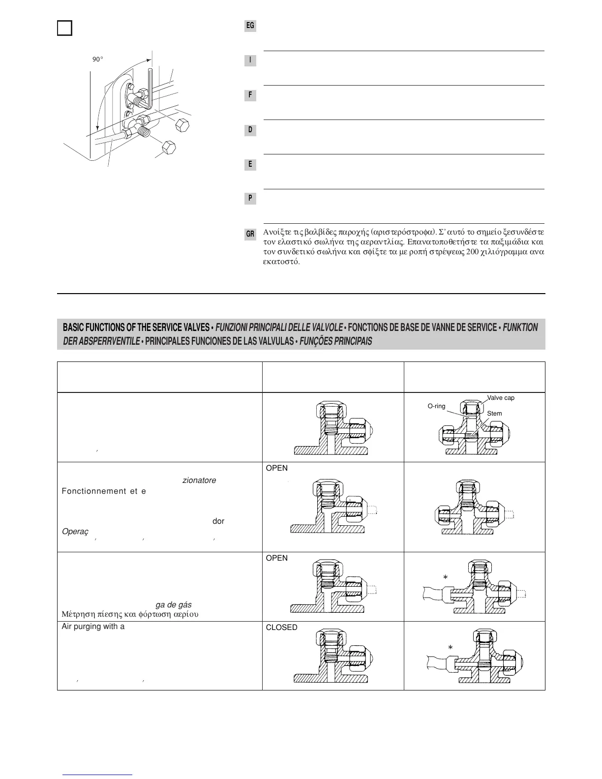 BASIC FUNCTIONS OF THE SERVICE VALVES • FUNZIONI PRINCIPALI DELLE VALVOLE • FONCTIONS DE BASE DE VANNE DE SERVICE • FUNKTION