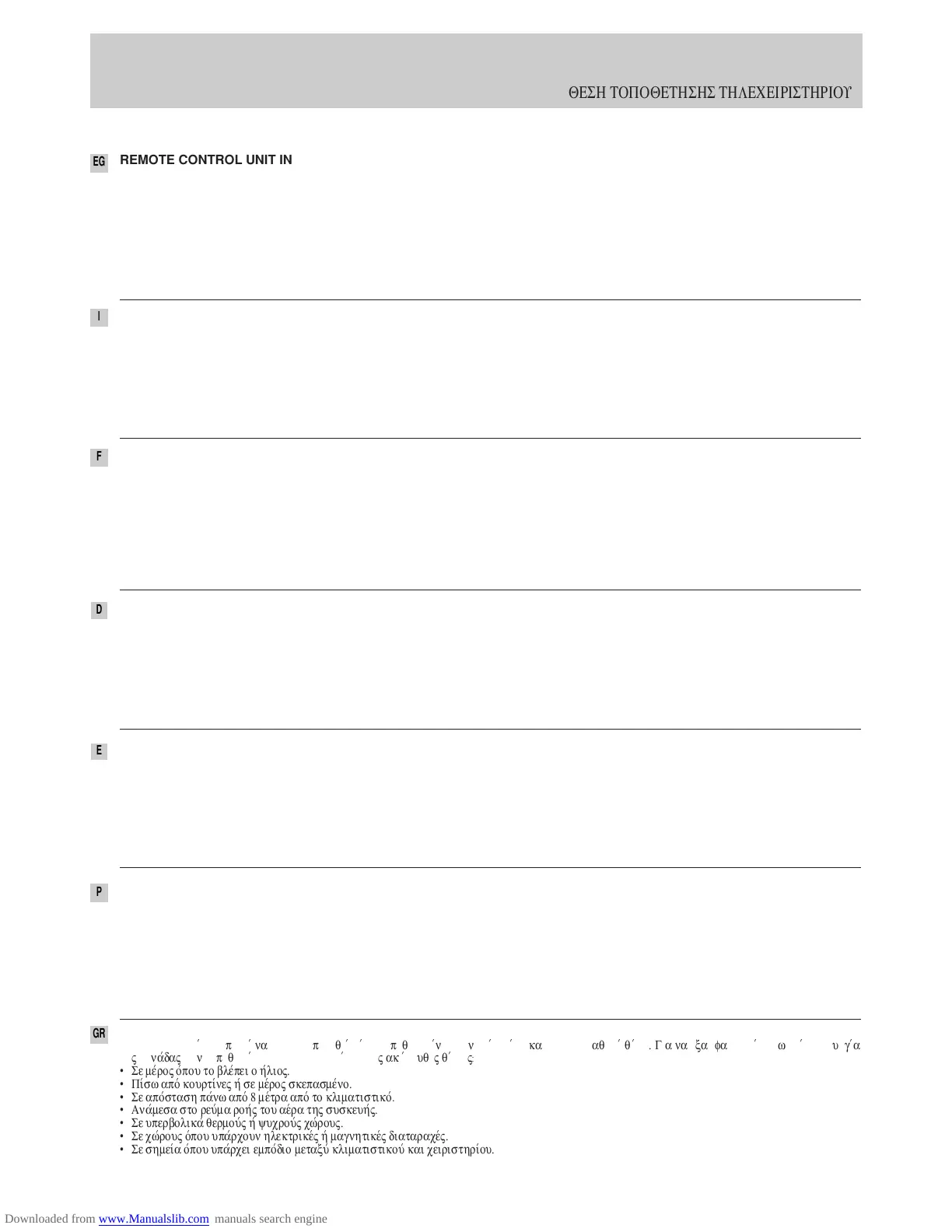 POSITION DER FERNBEDIENUNG • POSICION DE INSTALACION DEL MANDO A DISTANCIA •