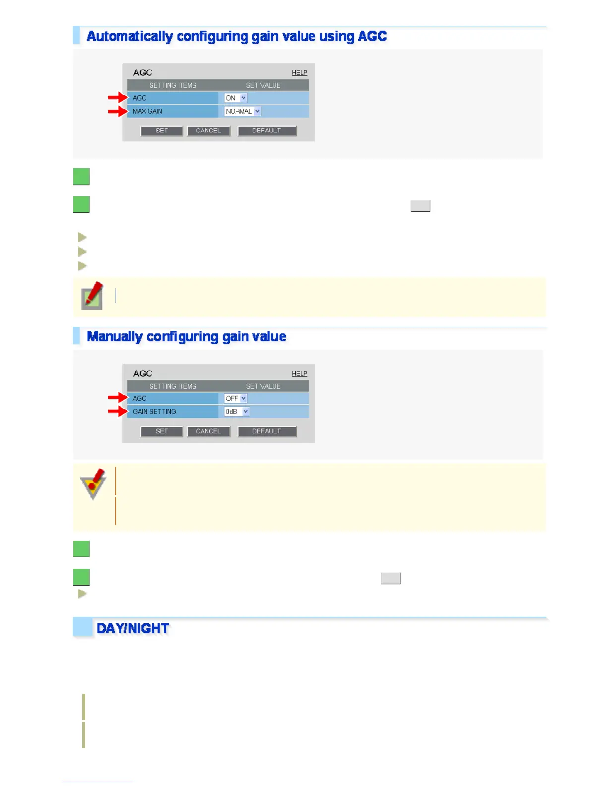 You cannot select “OFF” in [AGC] if the Day/Night function ([DAY/NIGHT]) is set to “AUTO” or the