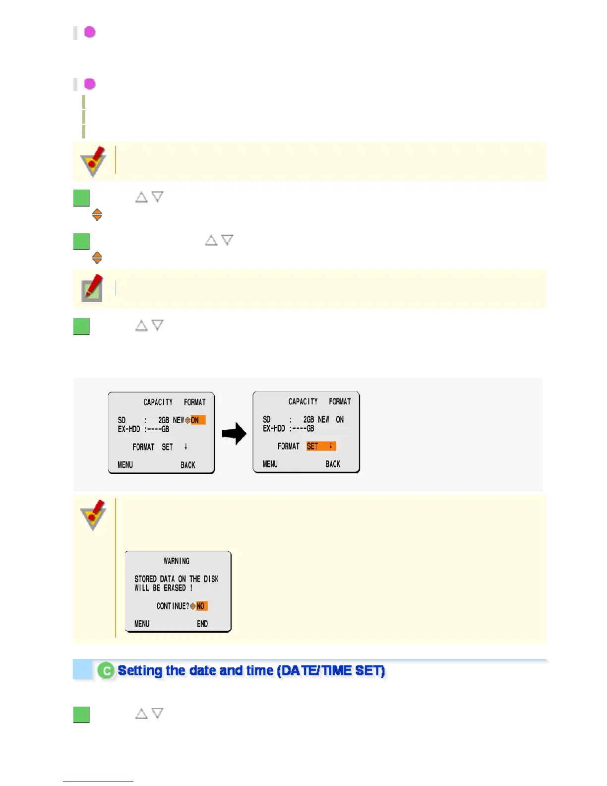 If you proceed to format the media, select “YES” using buttons and press the SET button. Doing this