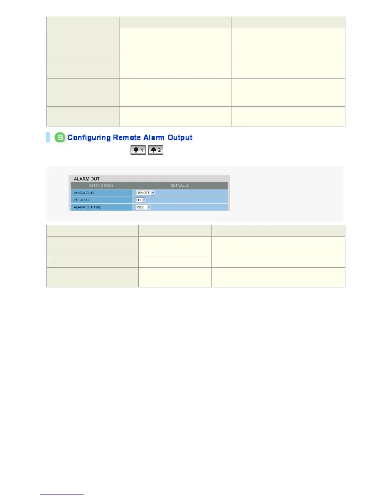 ALARM OUT TIME (Alarm output