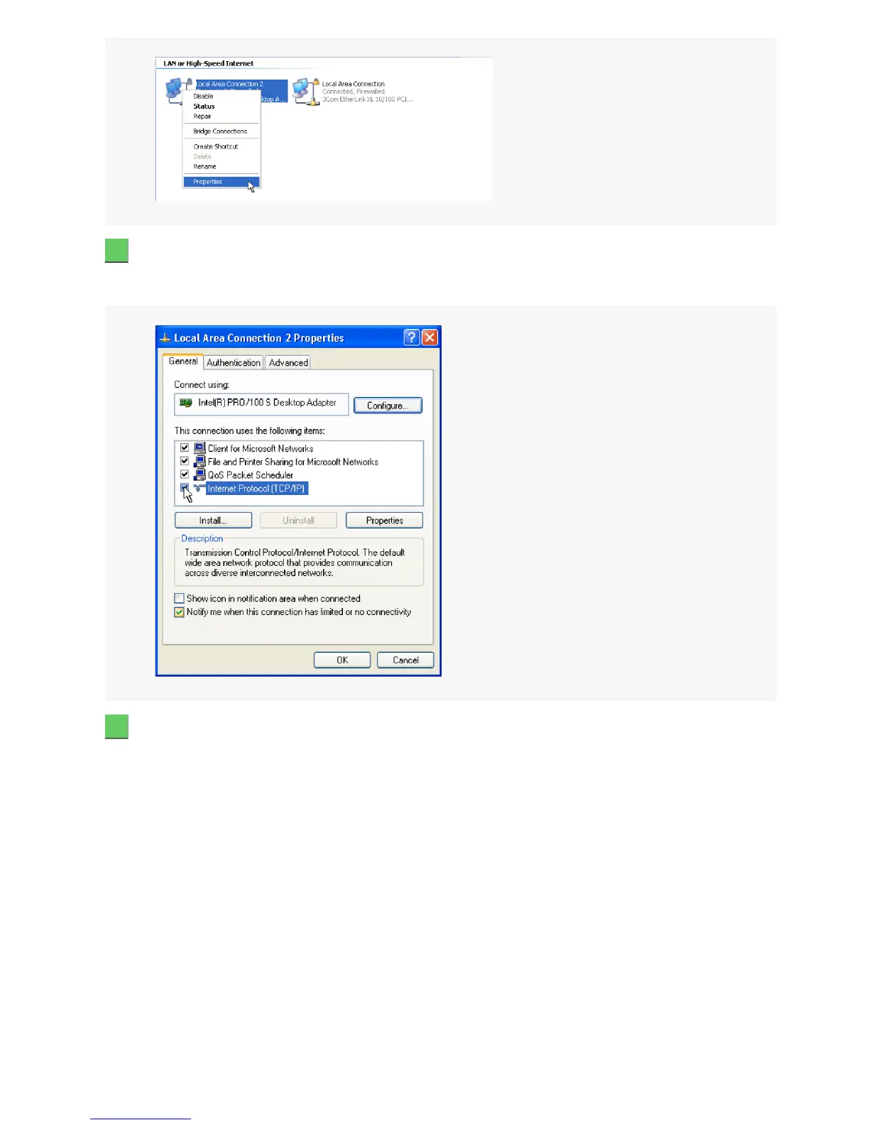 Confirm that the [Internet Protocol (TCP/IP)] check box is selected. If deselected, select the check box.
