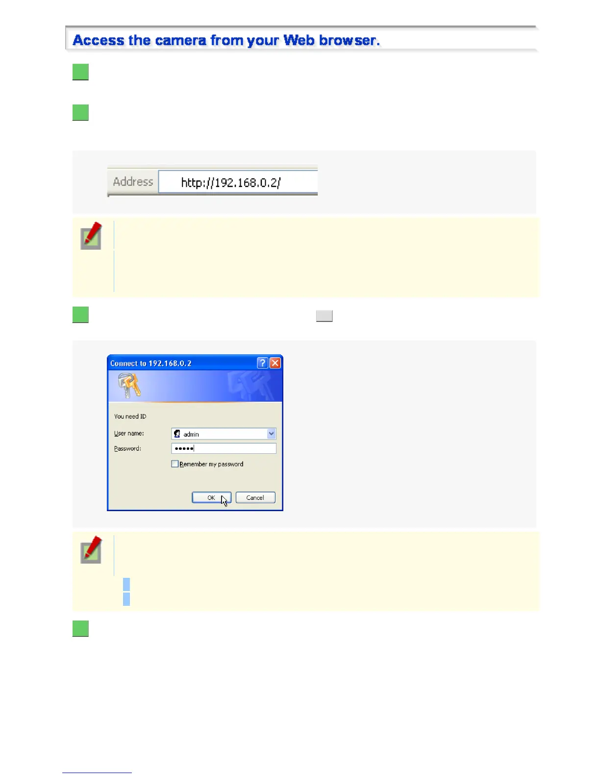 When you access the camera for the first time, login as an admin user and perform the necessary