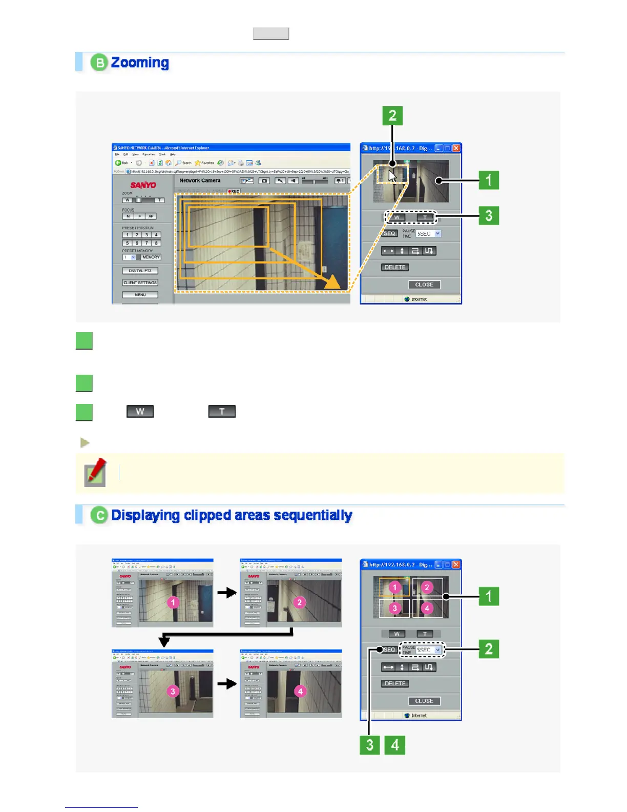 You can monitor two or more clipped areas of the subject one after another by automatically switching them.