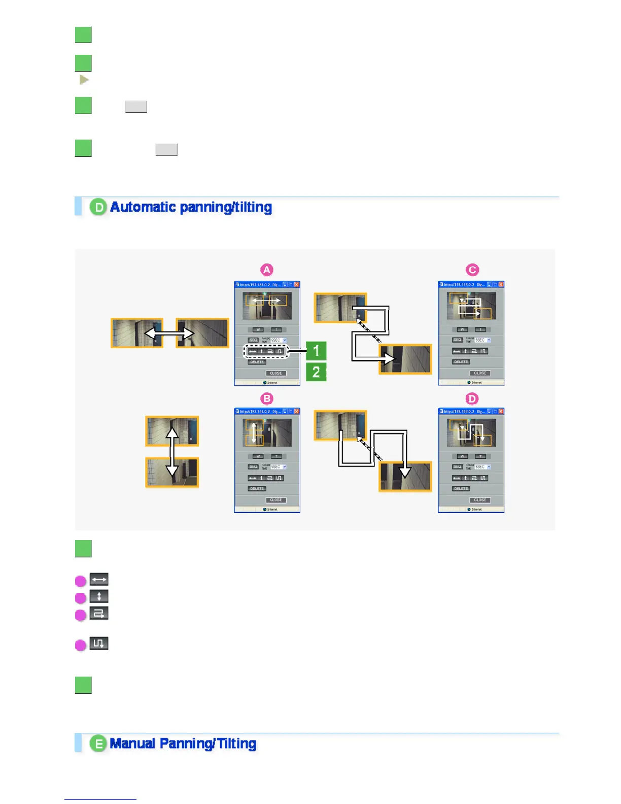 You can have a clipped area pan/tilt automatically. Four patterns of auto panning/tilting are available as shown