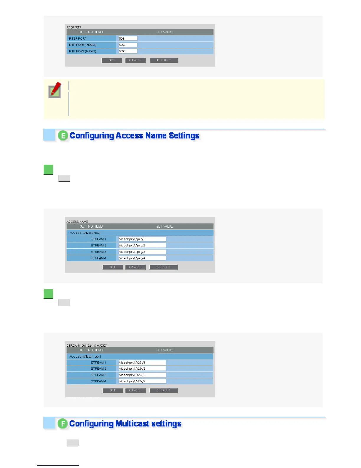1 Under [ACCESS NAME (JPEG)], type an access name for each JPEG stream and click