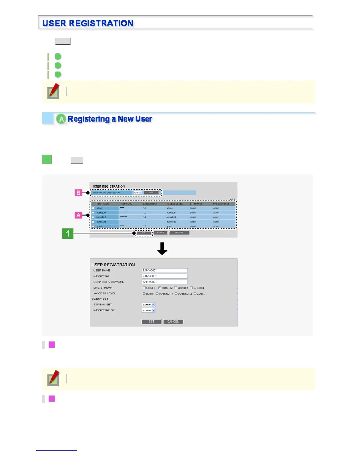 Click USER in the configuration menu to display the USER REGISTRATION screen.