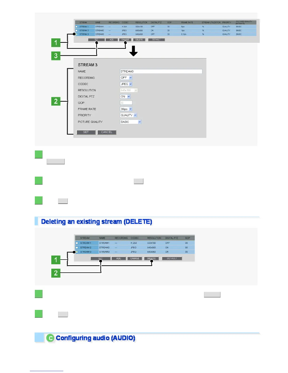 3 Click SET in the stream list.