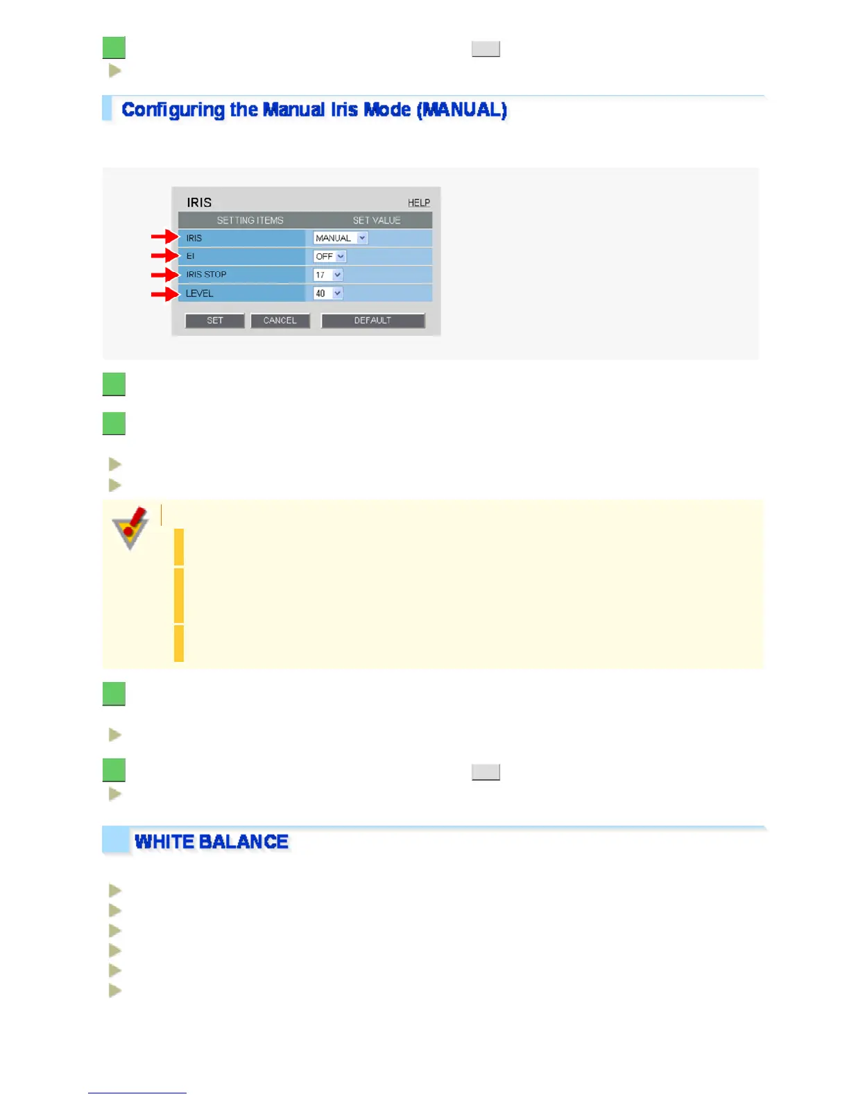 If you have decided to use the electronic iris, configure the lens iris manually using the following procedure.
