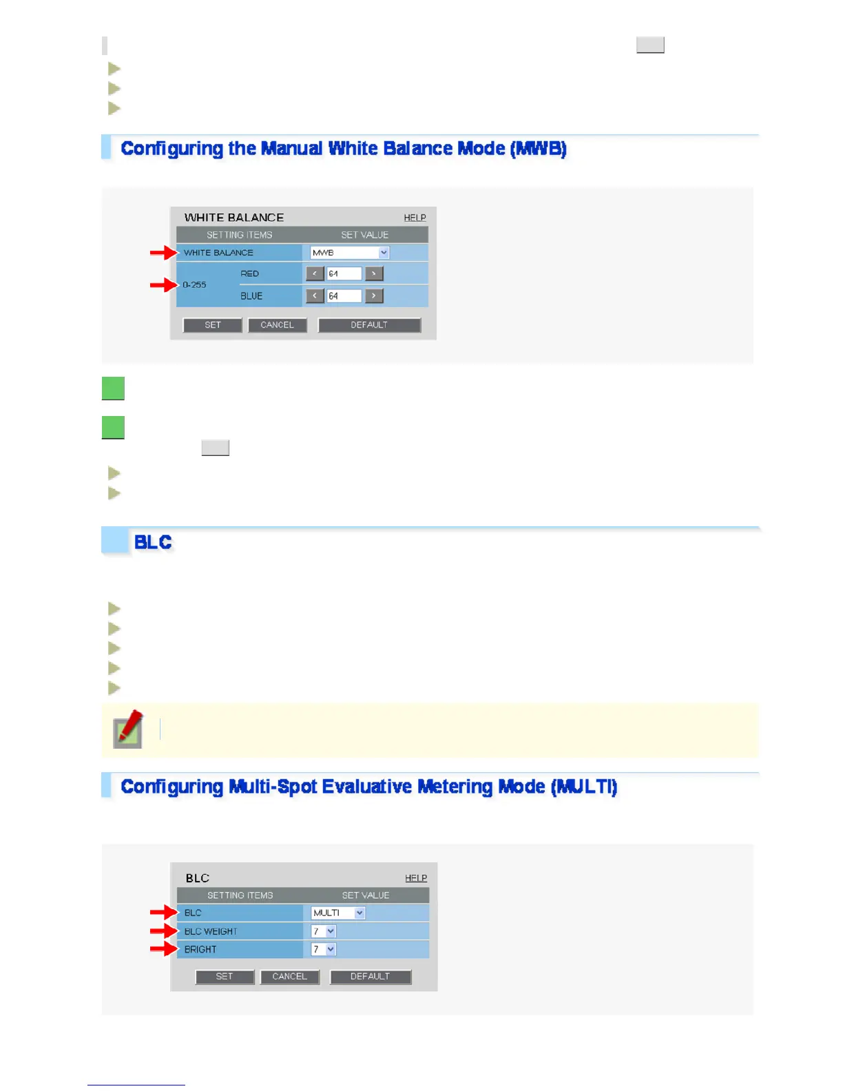 In [WHITE BALANCE], select the desired fixed white balance mode and click SET .