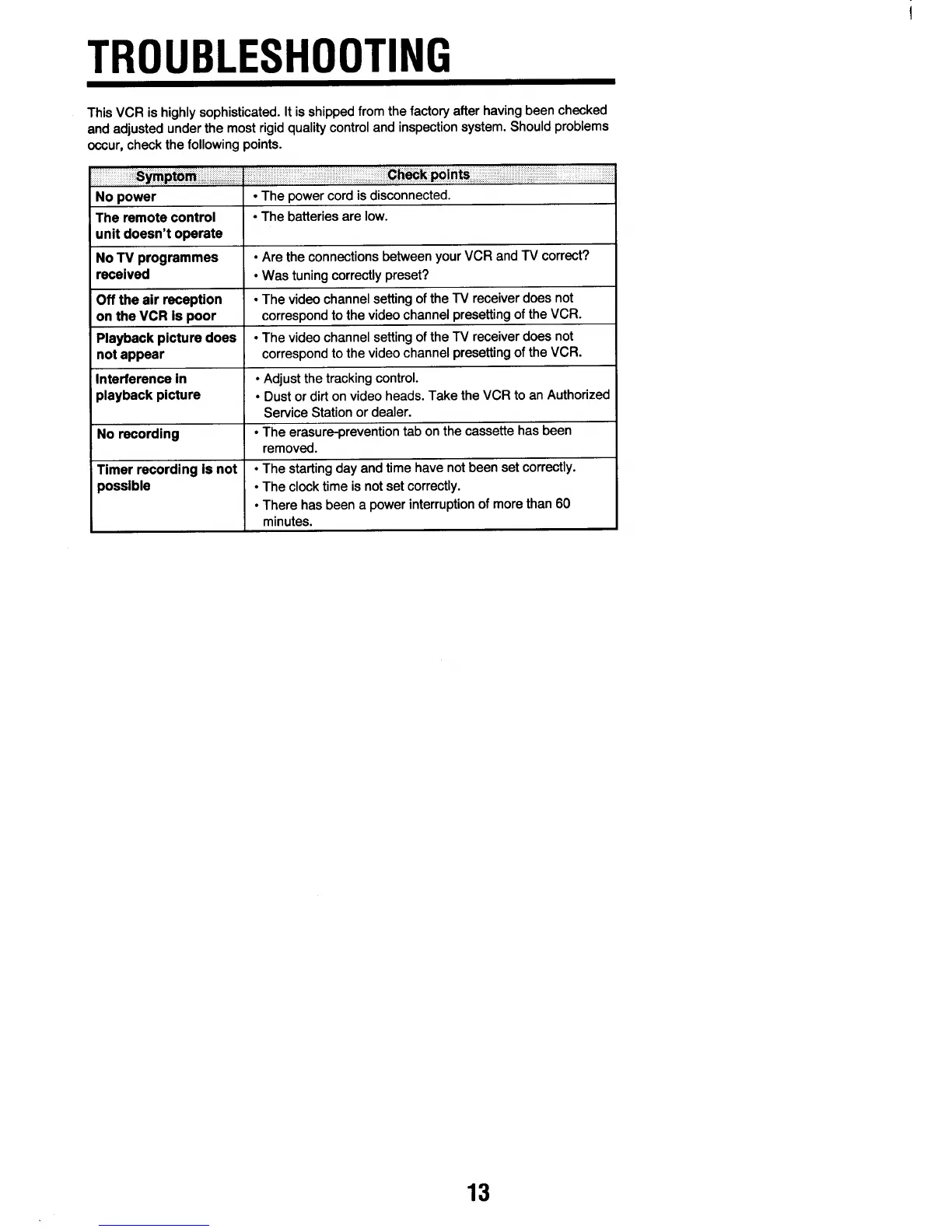 ● Dust or dirt on video heads. Take the VCR to an Authorized