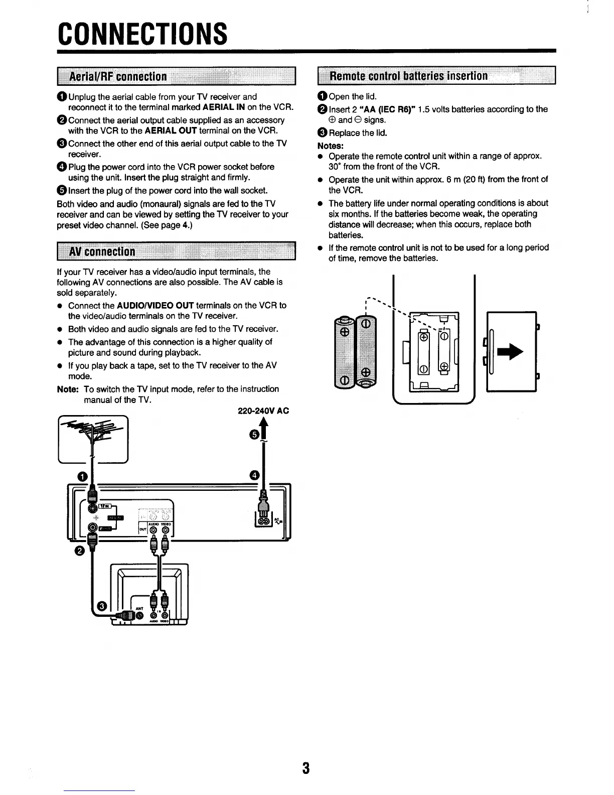 Connect the AUDIO/VIDEO OUT terminals on the VCR to