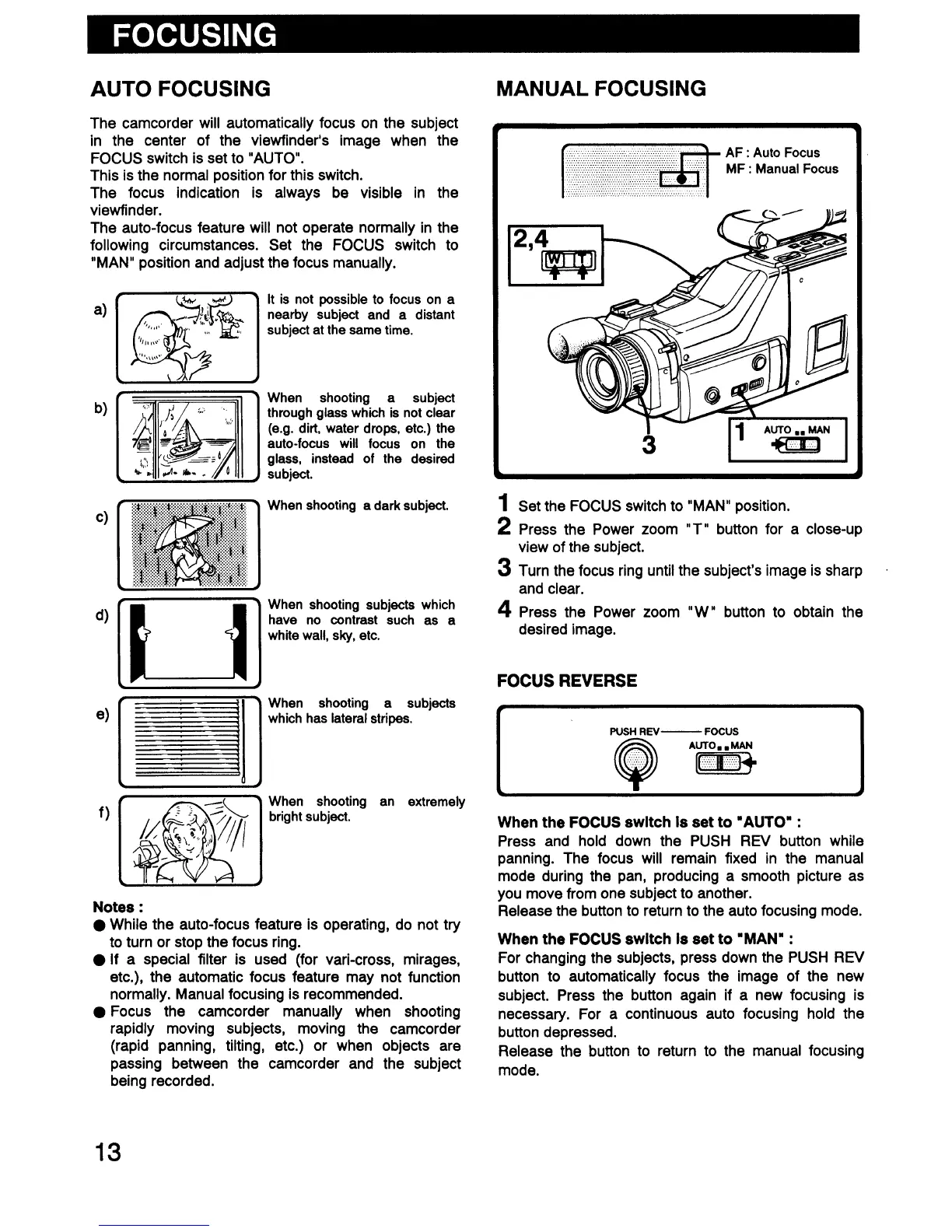 Sanyo VM-D66P - Focusing; Auto Focusing; Manual Focusing