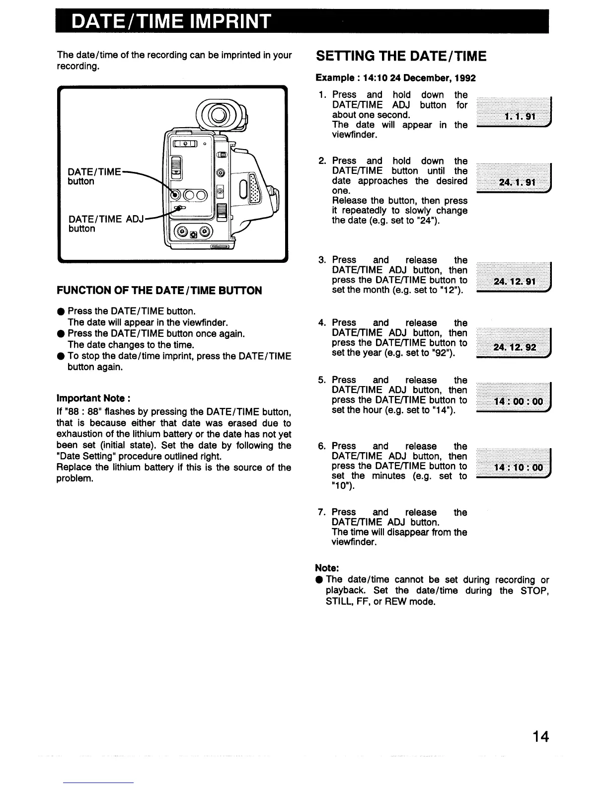 Sanyo VM-D66P - Date;Time Imprint; Setting the Date;Time; Function of the Date;Time Button