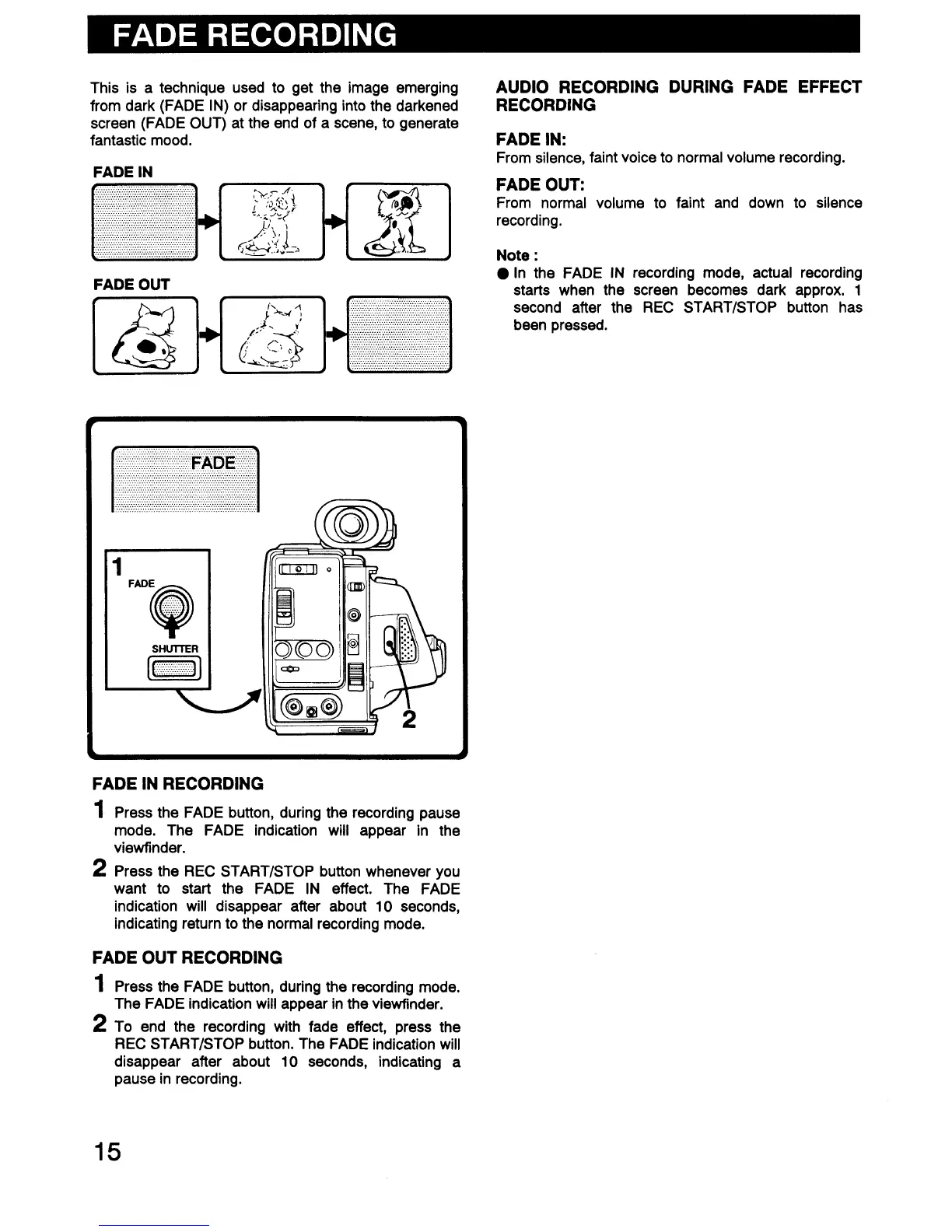 Sanyo VM-D66P - Fade Recording; Fade In Recording; Fade Out Recording