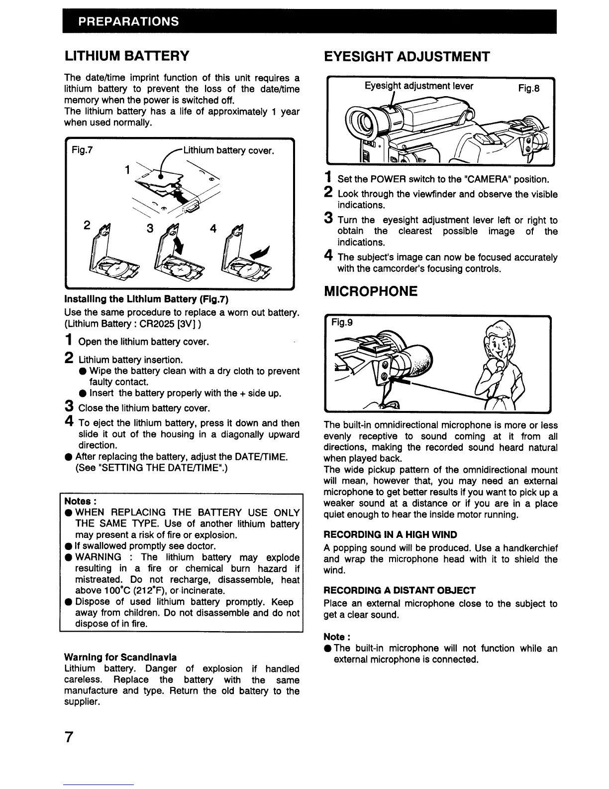 Sanyo VM-D66P - Lithium Battery; Eyesight Adjustment