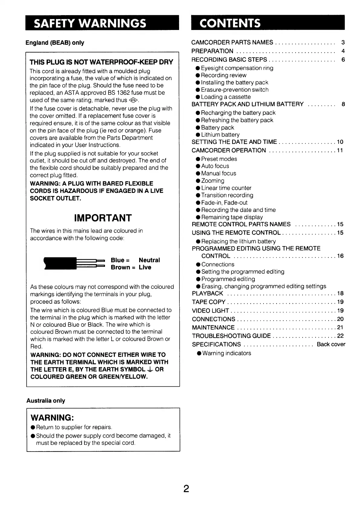 Sanyo VM-EX26P - Table of Contents