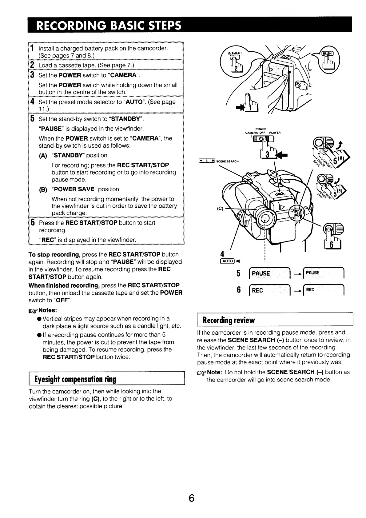 Sanyo VM-EX26P - Recording Basic Steps; Eyesight Compensation Ring; Recording Review