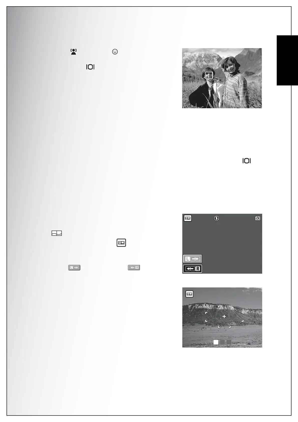 The face ( ) and smile ( ) detection functions